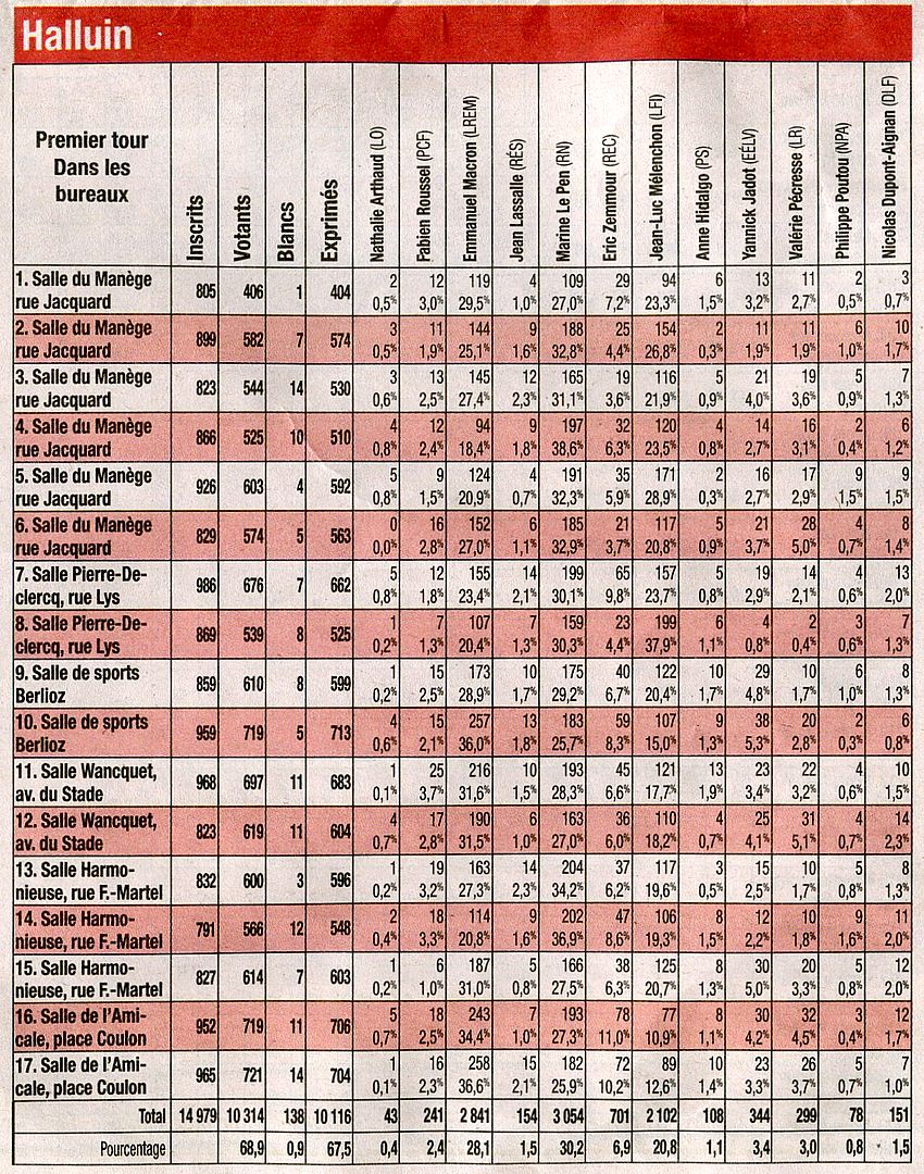 Elections Présidentielles 2017 - Halluin (Résultats 1er Tour).