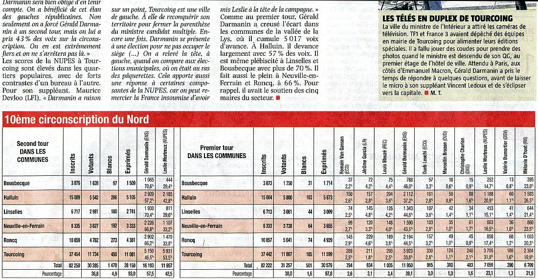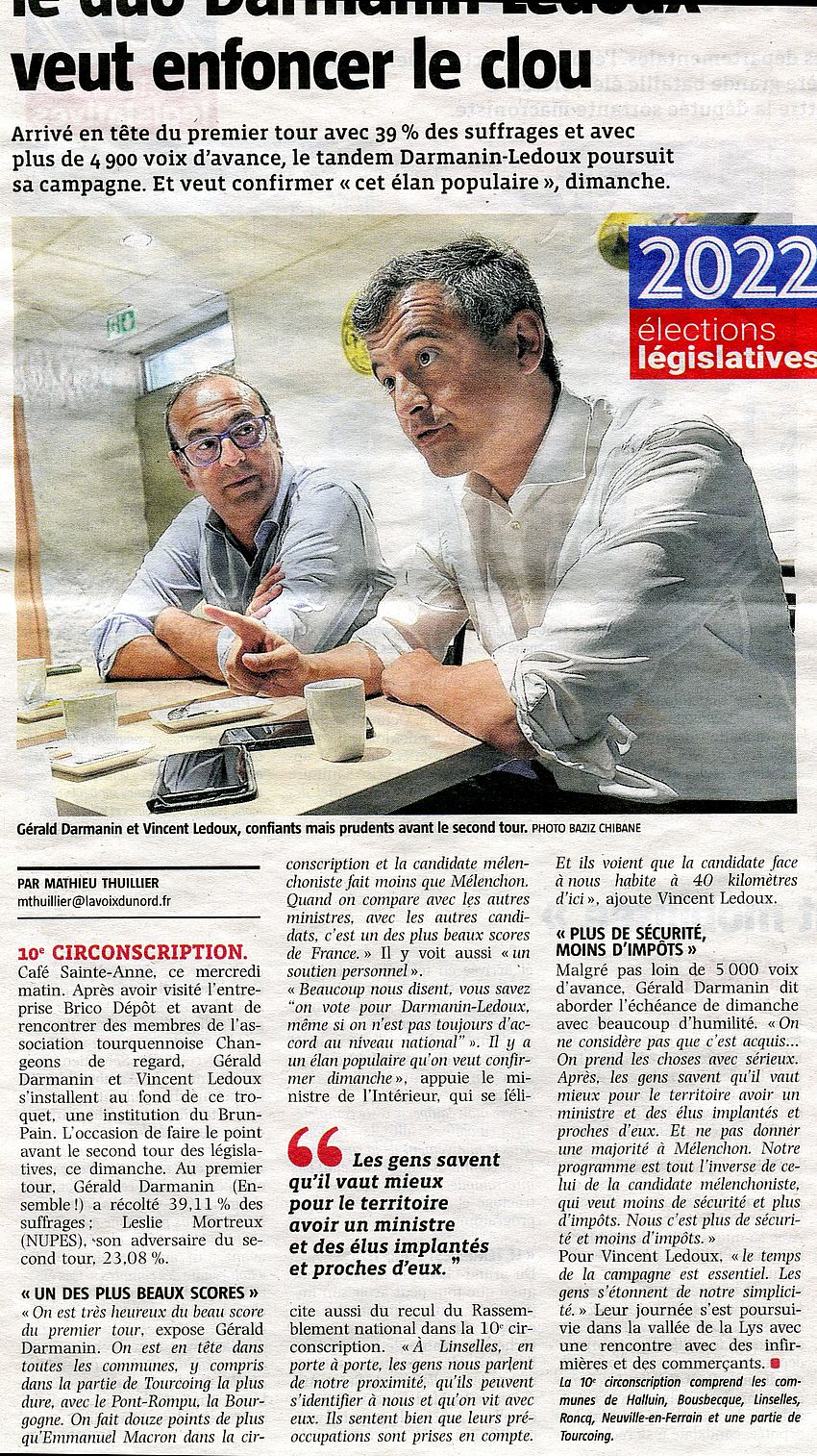 Législatives 2022 : Gérald Darmanin et Vincent Ledoux vainqueurs dans la Xe du Nord.