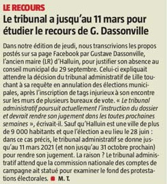 Publication "Nord Eclair" le 2 Octobre 2020.
