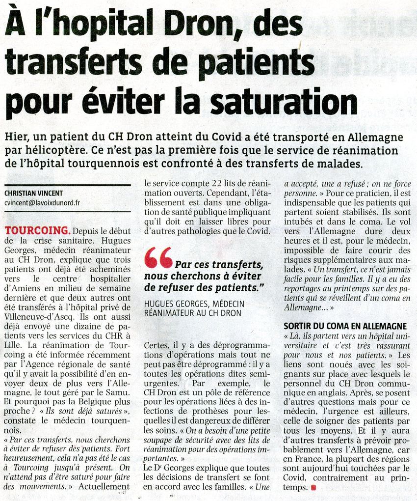 Publication "Voix du Nord" le 10 Novembre 2020.