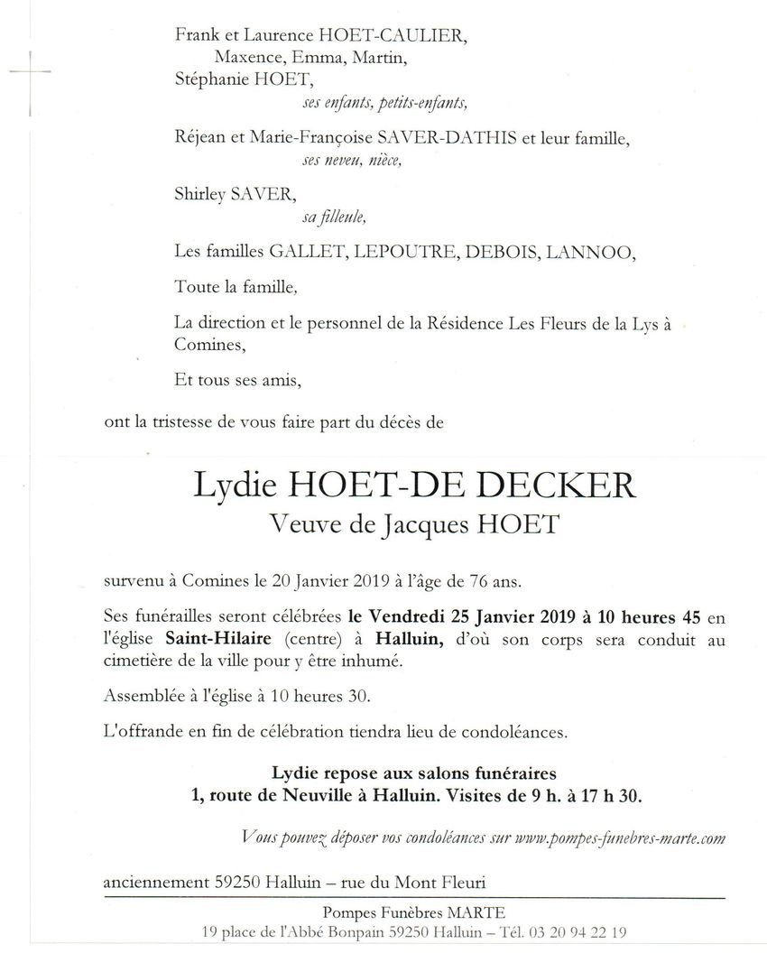 Madame Veuve Jacques Hoet née Lydie De Decker