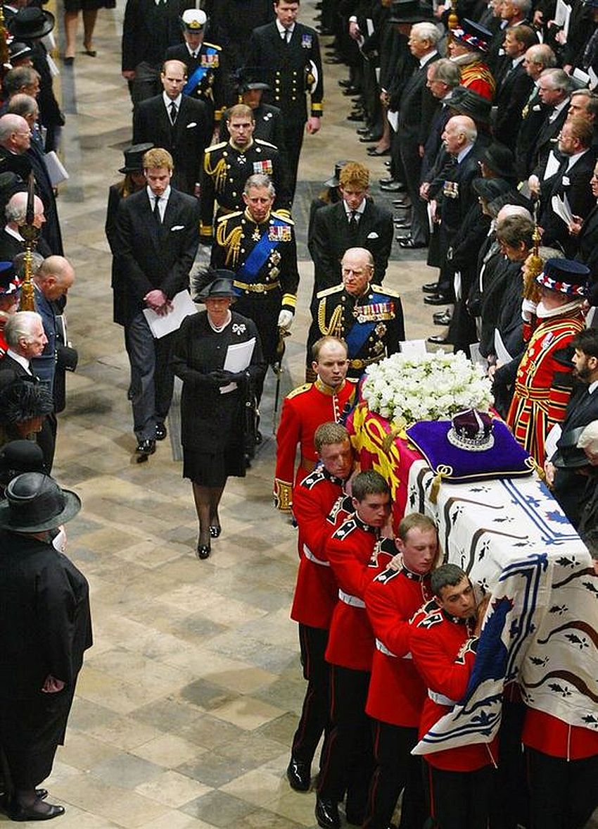 Elizabeth II et la famille royale aux Funérailles de Diana Spencer