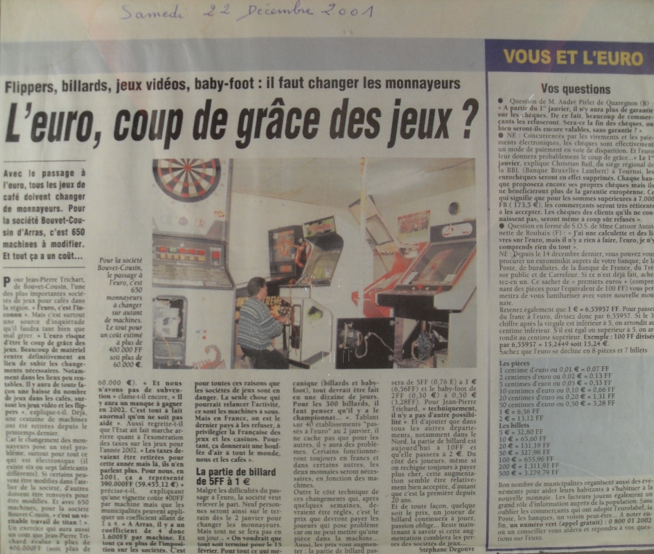 Au début(janvier 2002)c'était un peu la panique,on allait chercher des pièces et des billets d'euros pour 100 de nos francs,on payait en francs et le commerçant rendait la monnaie en euros,petit à petit on s'y est habitué,mais encore pas mal de personnes ,font encore la conversion de l'euro vers le franc, pour donner une idée approximative de l'achat.photos extraite du journal 'nord éclair'et ARPH.2/2