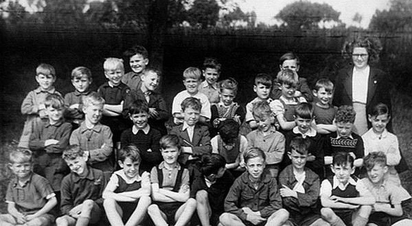 Une classe de l'école du Sacré-Coeur Halluin, année 1947-1948, avec Mlle Lepers. On peut apercevoir :