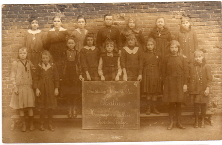 Au 1er rang à droite du tableau : Simone Wynckels, Pauline Canar, Marie-Madeleine Vandepitte, Marguerite Pelle, Marguerite Drouart, Marie-Madeleine Vanaerde,.....et l'institutrice Imelda Verschae