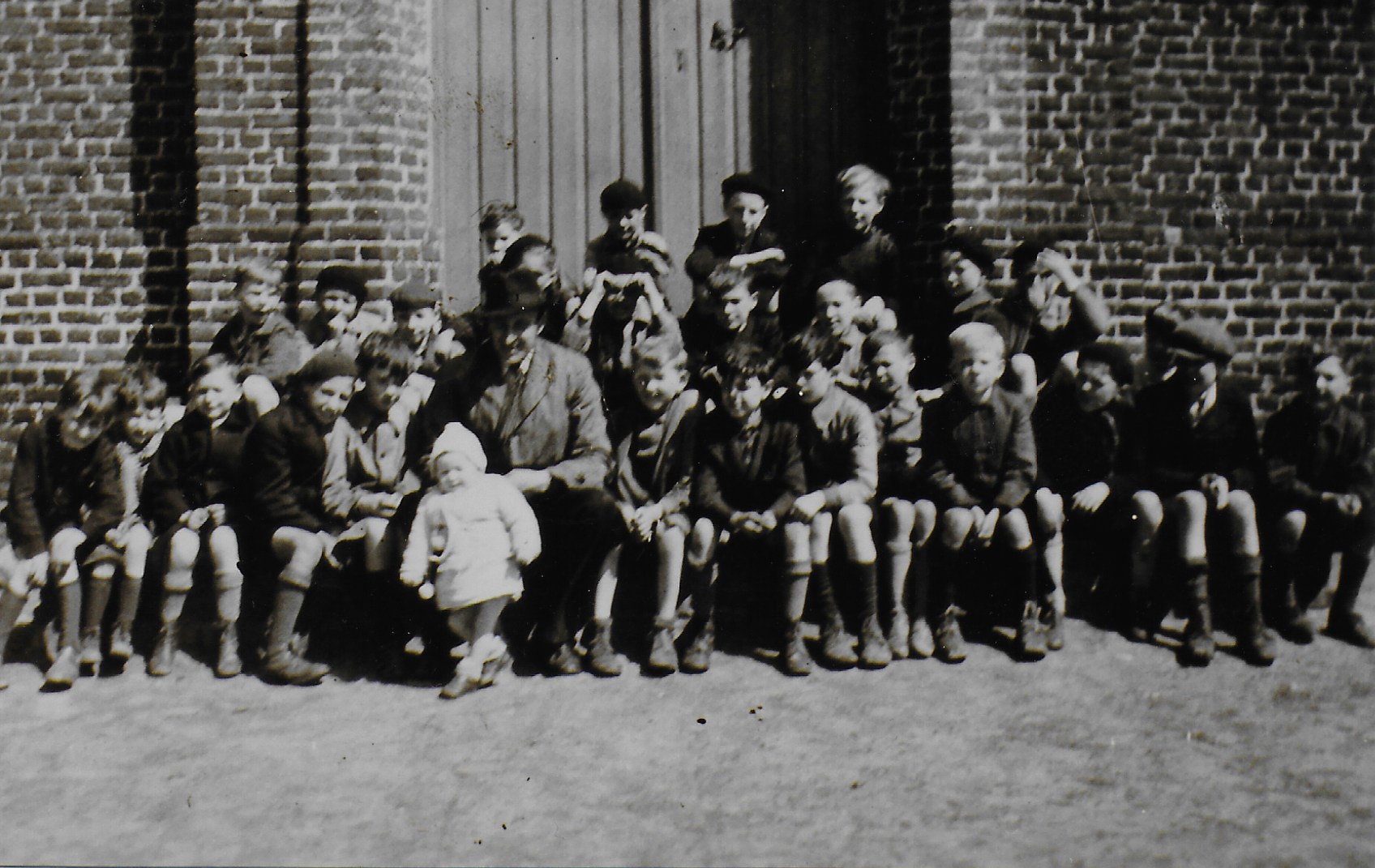 Au premier rang:Crombez...-François Vanhalst,Mme Mortelette et sa fille dans ses bras,Bernard Dujardin,Régis Vanhalst,Michel Nollet,?,Hubert Chombeau,Jacques Declercq.