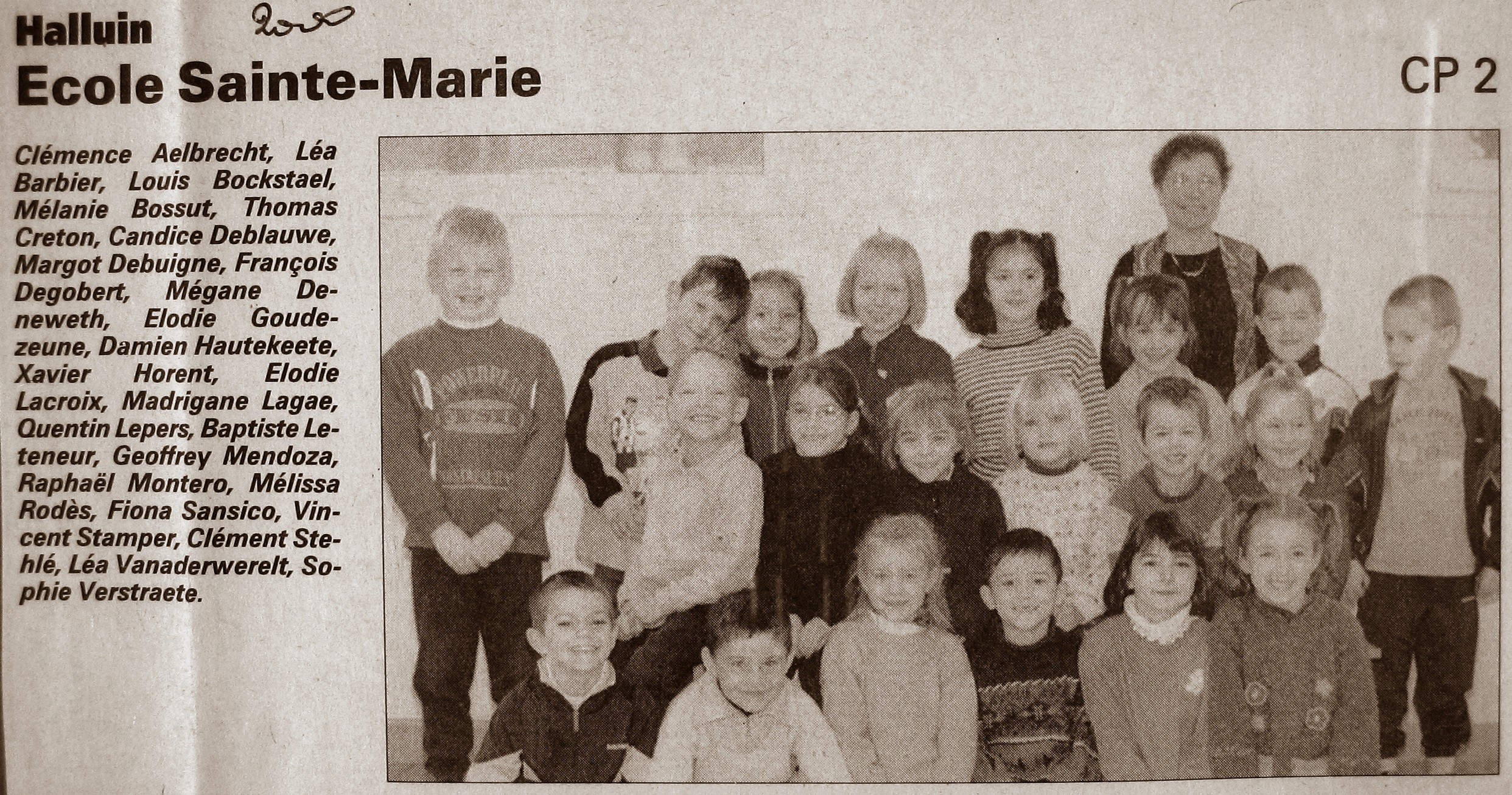 CE1b: Valentine Baert, Kévin Balladur, Laurie Casier, Coralie Cloet, Maëlle Coudron, Thibault Creupelandt, Adeline Decodin, Chloé Dedicker, Rodrigue Dutoit, Robin Fantino, Adrien Fernandez, Virginie Forceville, Amandine Gontier, Cassandre Hermaert, Maxime Kadi, Hélène Ostyn, Maxime Parret, Méghane Pouch, Axel Quinquempois, Fabien Rigolle, Cassandra Scholaert, Guillaume Stamper, CoralieThellier, Matéo Uriatre, Marie Vanmeerhaeghe, Mathias Vanoverberghe,