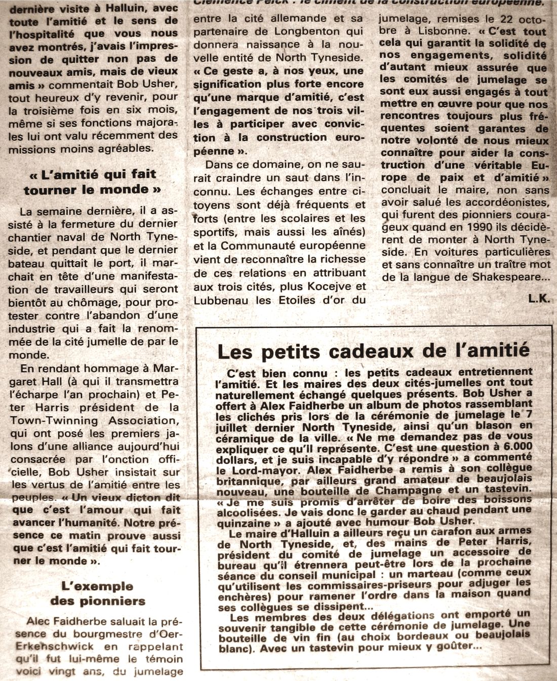 Rencontre Halluin et North Tyneside - 1995.