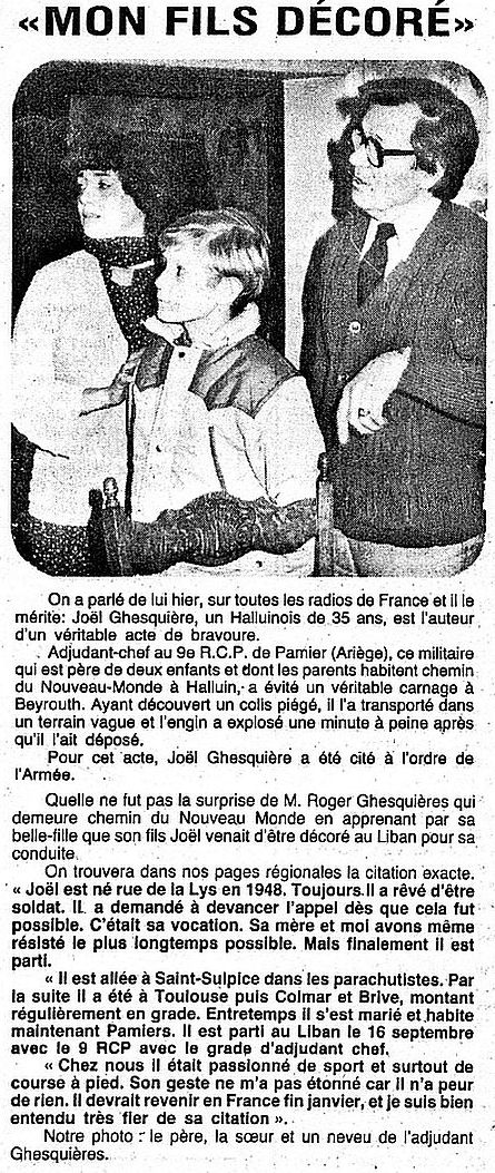 de Pamiers (Ariège) où était incorporé l'Halluinois Joël Ghesquière.