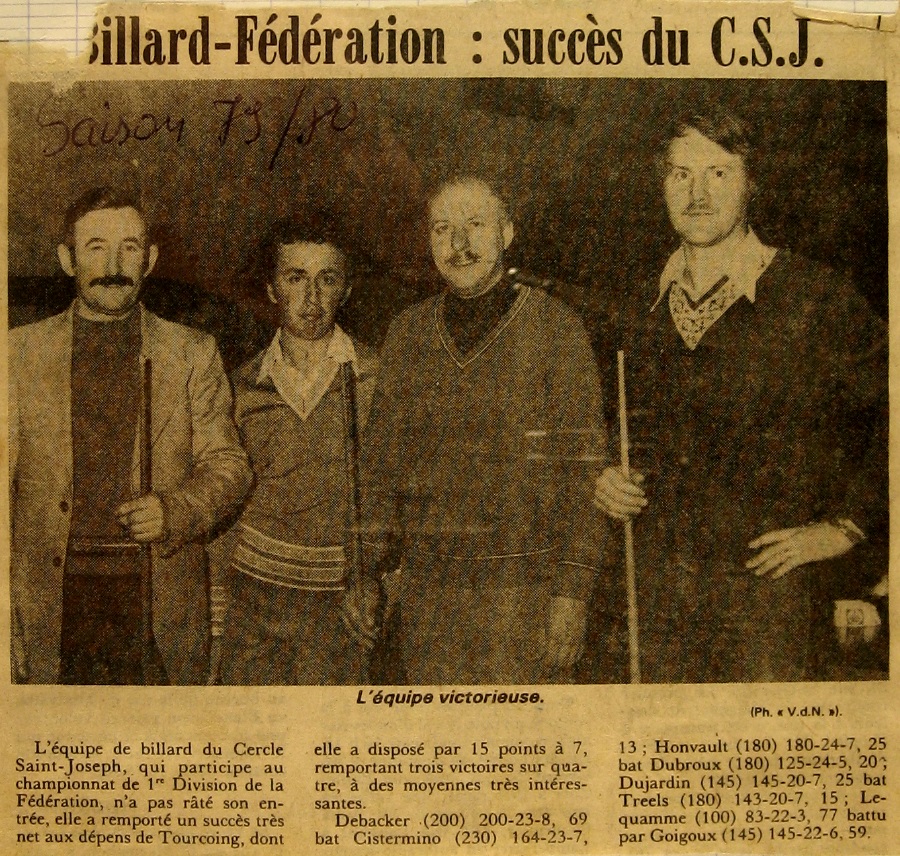 G.àD. J.Dujardin, P.Delbassez, J.Montagne, G.Jonckère, D.Clayes, V.Vanoverberghe, R.Vancoilie, C.et H.Monsorez, C.Dujardin, D.Hasset,