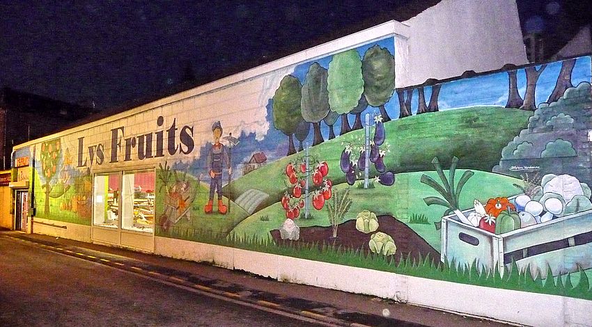 Réalisée en 1987, la peinture murale oeuvre de l'artisan décorateur halluinois "Maxime"...