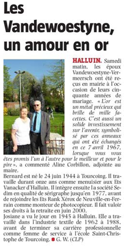 Noces d'Or : Bernard Vandewoestyne - Josiane Vermeersch (Avril 2017).