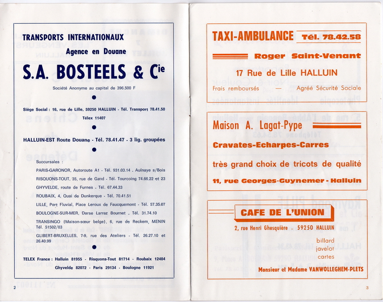 Concours du club cynophile Les Vengeurs en 1974 et publicité de commerçants de cette époque