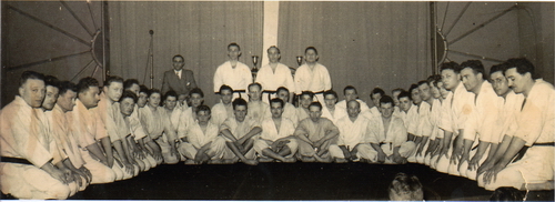 Club de judo en 1952. Au premier plan de g à d : Roger Dhelft,