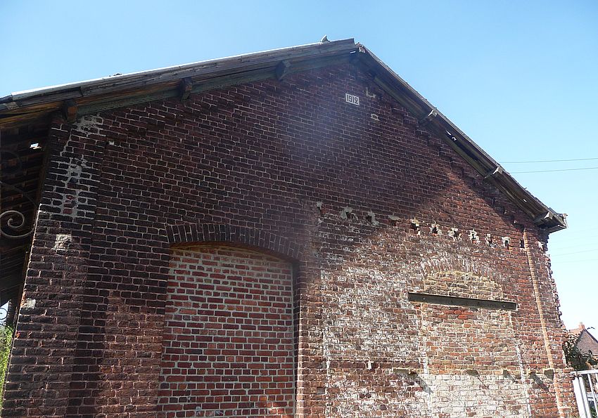 Si la conservation de ce bâtiment a bien été envisagée par la Ville, avant cette décision définitive… ne pourrait-on pas arrêter cette destruction… à la limite du dernier pignon... où figure la date de construction de ce long hangar (1912)… Ceci, afin de conserver et rappeler dans la mémoire collective, l’emplacement et l’importance de l’ancienne gare halluinoise.