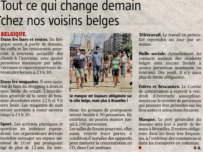 Belgique Déconfinement... Changement à Compter du 8 Mai 2021.
