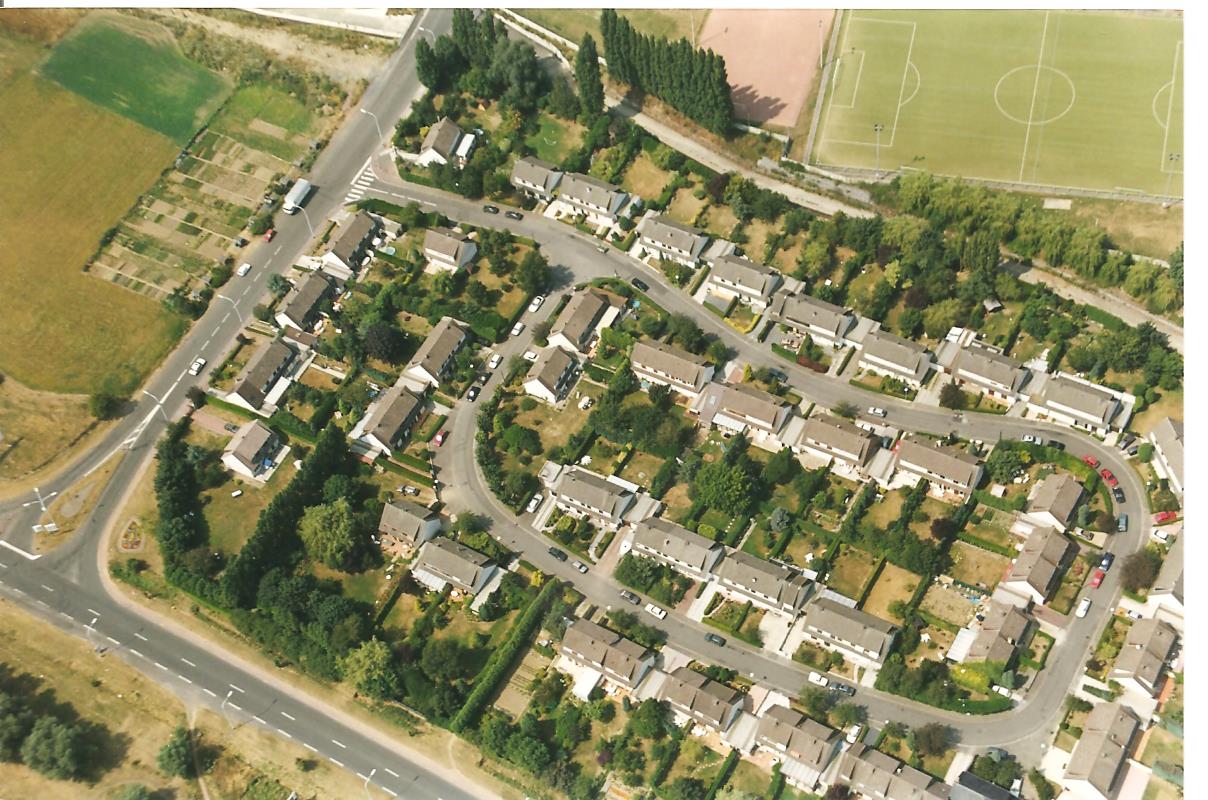 Le terrain de foot et le quartier du 'Québec' vus du ciel.