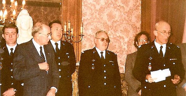 En 1996, durant les festivités du 150ème anniversaire, l’halluinois André Gevaert a été nommé Commandant honoraire. Une récompense très méritée au moment du départ en retraite, après 46 années de double vie au service du Centre de Secours d’Halluin.