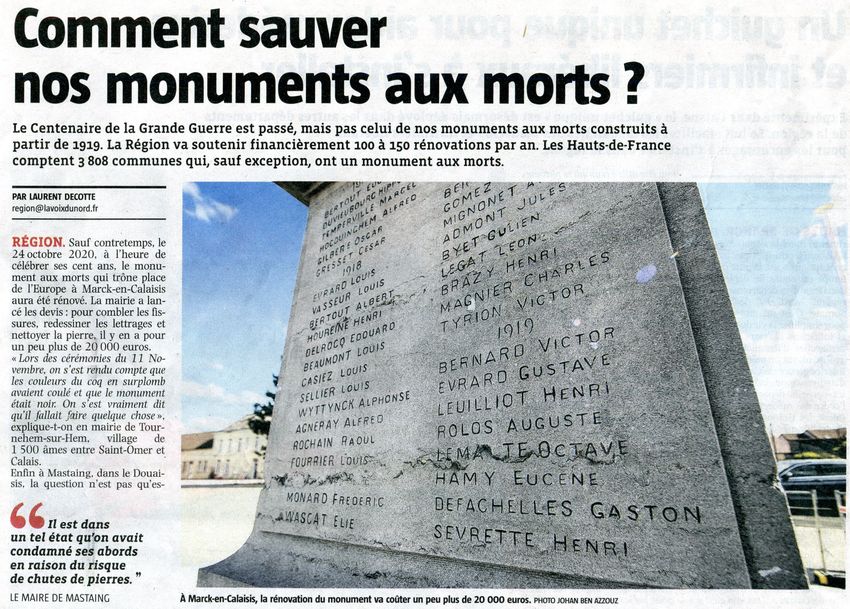 Publication "Voix du Nord" le 14 Avril 2019.