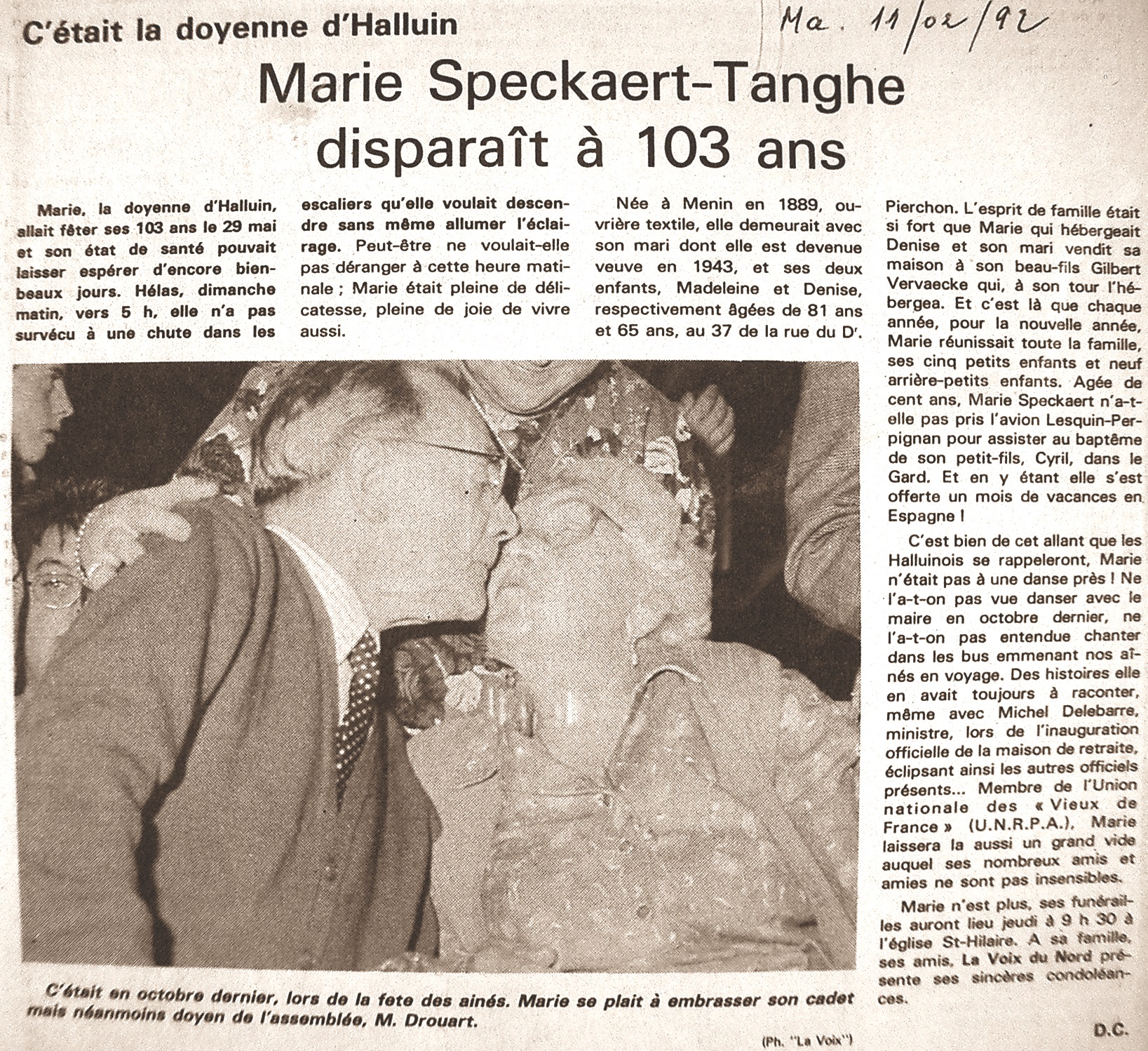 MARIE TANGHE-SPEECKAERT FÊTE SES 102 ANS